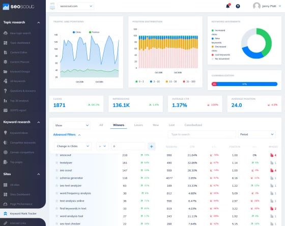 Discover you top keywords by traffic, not vanity, and explore the biggest gains and losses in organic search volume at the keyword level.